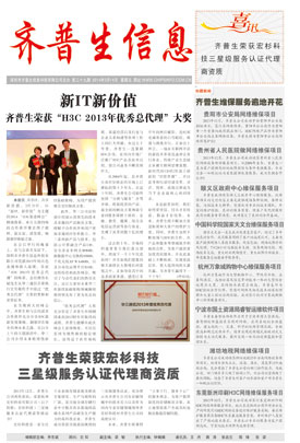 新IT 新價值 齊普生榮獲“H3C 2014年優秀總代理”大獎